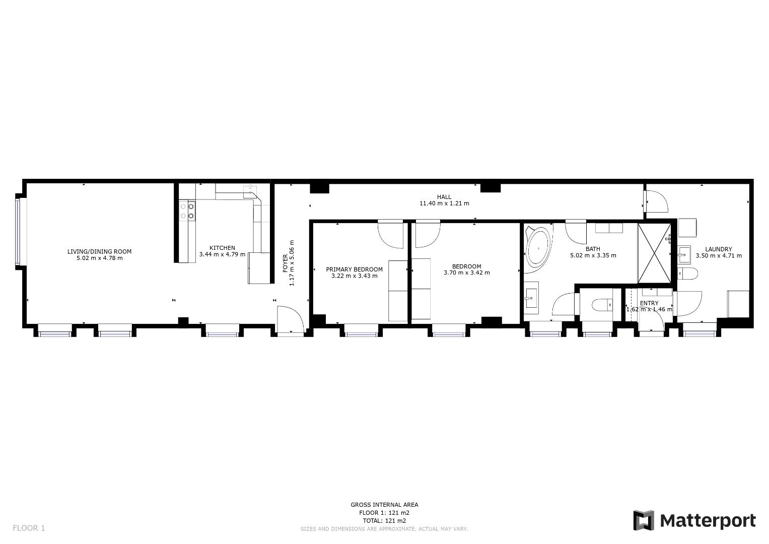 Do bytu sa vstupuje cez chodbu, z ktorej sa po ľavej strane vstupuje do kuchyne s plynulým prechodom do obývačky. Po pravej strane pokračuje chodba, z ktorej sa dostanete do spálne, detskej izby, kúpeľne a technickej miestnosti s druhým WC. Na terasu je vstup zvonka - – ideálne miesto na rannú kávu či večerný oddych..