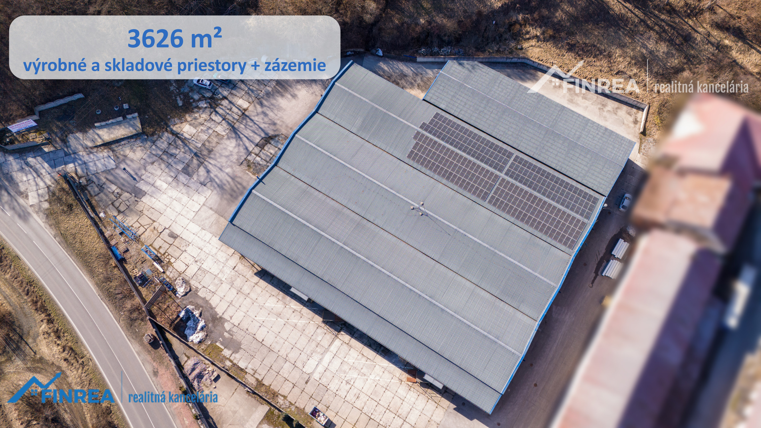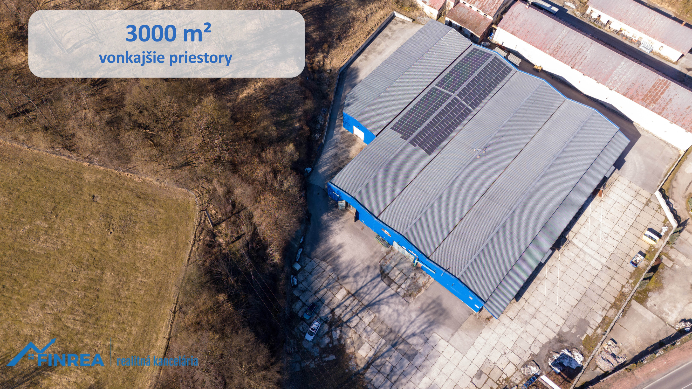 K dispozícii sú haly s celkovou výmerou 3 626 m² so sociálnym zázemím, ktoré poskytujú dostatok priestoru pre rôzne typy prevádzok. Súčasťou areálu sú aj veľkorysé vonkajšie plochy o rozlohe 3 000 m², vhodné na manipuláciu s tovarom, parkovanie či ďalšie skladovanie.